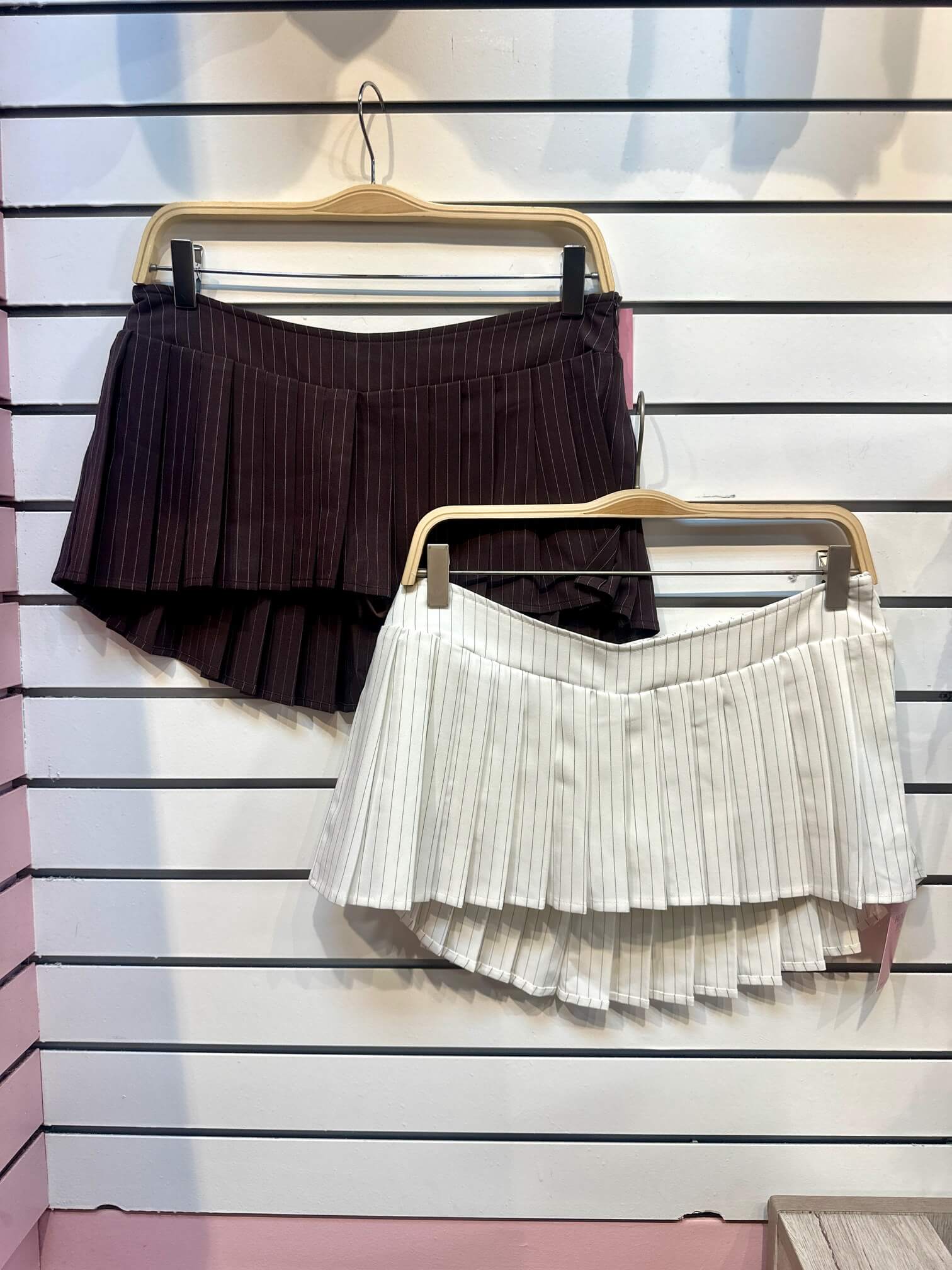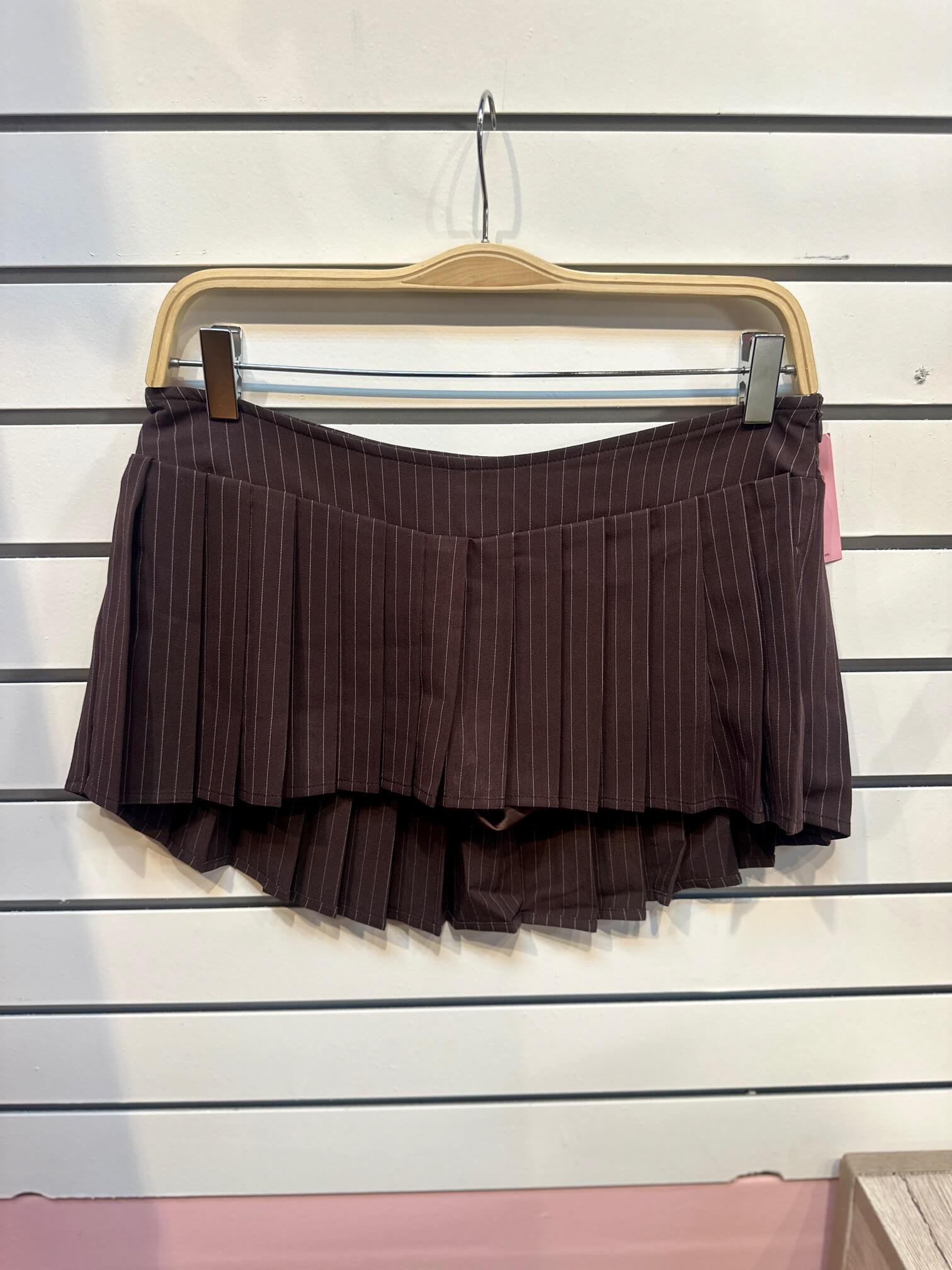 The Andrea Skirt brings effortless sophistication to your everyday rotation. This low-rise pleated micro mini features crisp pin stripes that elongate your silhouette while the flattering V-cut shape accentuates your curves. A sleek side zipper closure adds modern edge to this timeless piece. Perfect for layering or wearing solo, it's the versatile essential that transitions seamlessly from day to night.