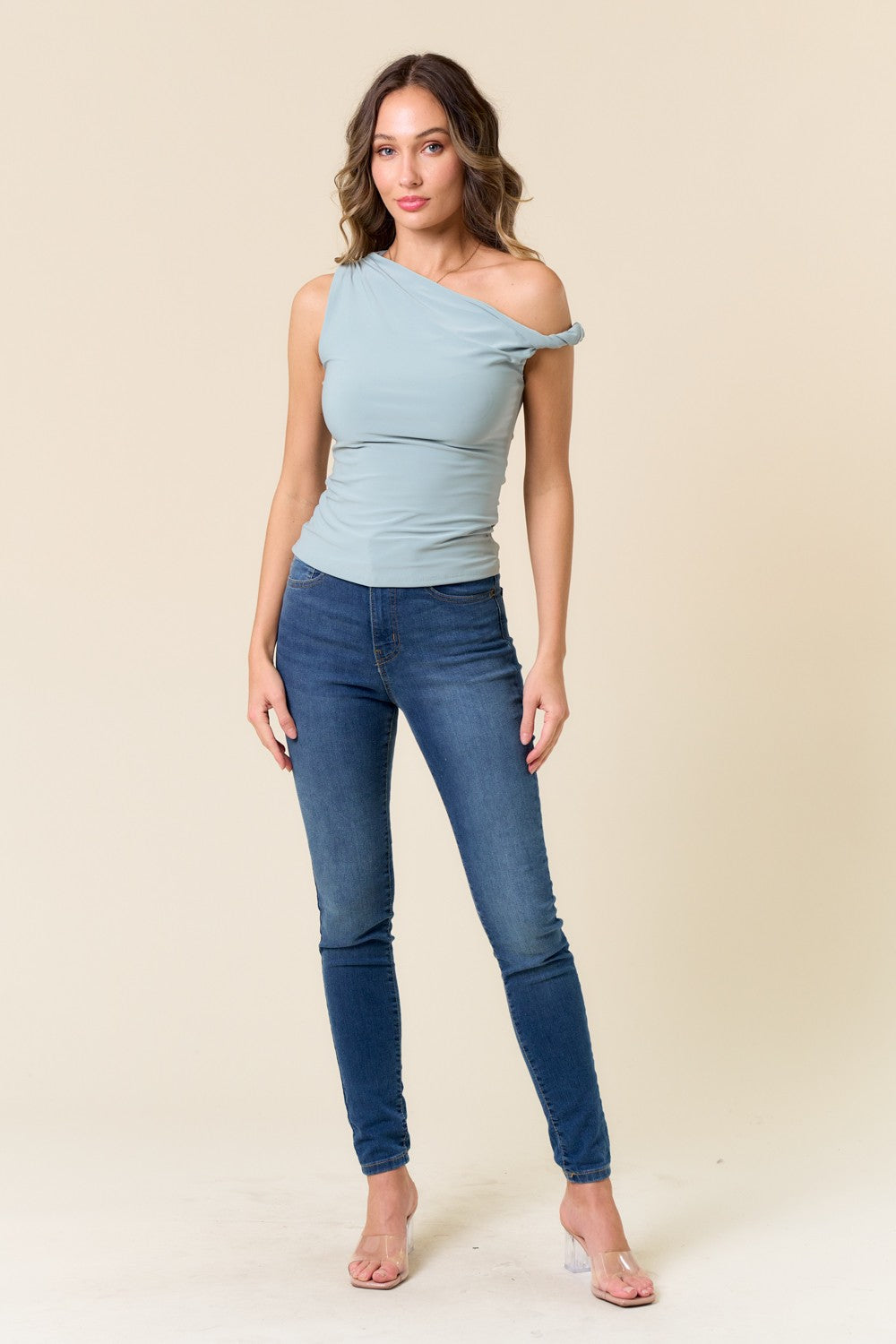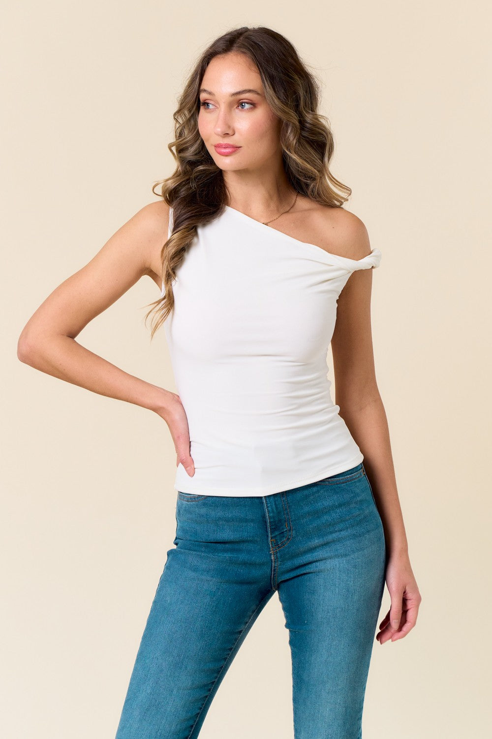 The Kiss Me Top brings effortless style to your everyday wardrobe with its striking asymmetrical design and delicate ruffled shoulder detail. This casual short-sleeve crop features strategic ruching that flatters your silhouette while the slim fit creates a polished, put-together look. Perfect for layering or wearing solo, it's the versatile piece you'll reach for again and again. Available in a timeless solid color that pairs with everything in your closet.