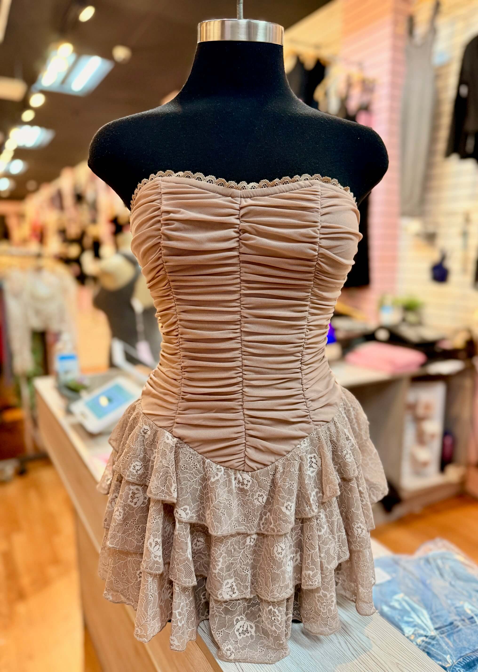 The Christine Mini Dress combines playful style with practical comfort. This tube dress features delicate ruffles along the hem and built-in shorts for worry-free movement. Perfect for warm weather outings, beach days, or casual gatherings, it offers the ease of a one-piece silhouette with the security of integrated shorts underneath. A versatile staple that transitions effortlessly from day to night.
