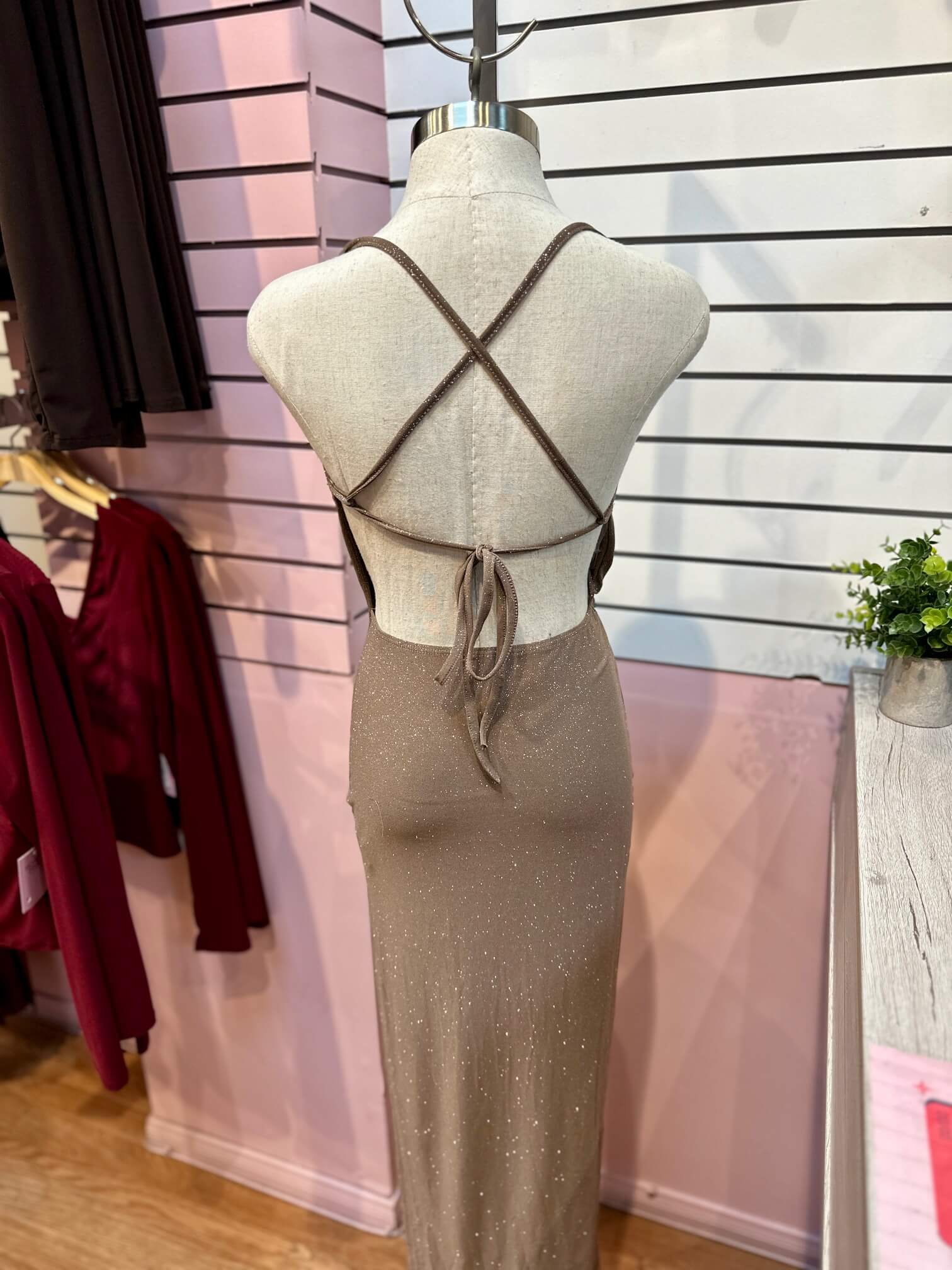 The Christy Dress is a bold, statement-making piece designed for those who embrace modern elegance. This sleek cami dress features a daring backless design with a criss-cross detail that adds intrigue and movement. The thigh-high split creates a flattering silhouette while maintaining a refined aesthetic, perfect for nights out or special occasions. Supported by delicate spaghetti straps and crafted with a slim fit, this long dress offers a sophisticated balance of edge and grace. Turn heads in a piece that's unmistakably you.