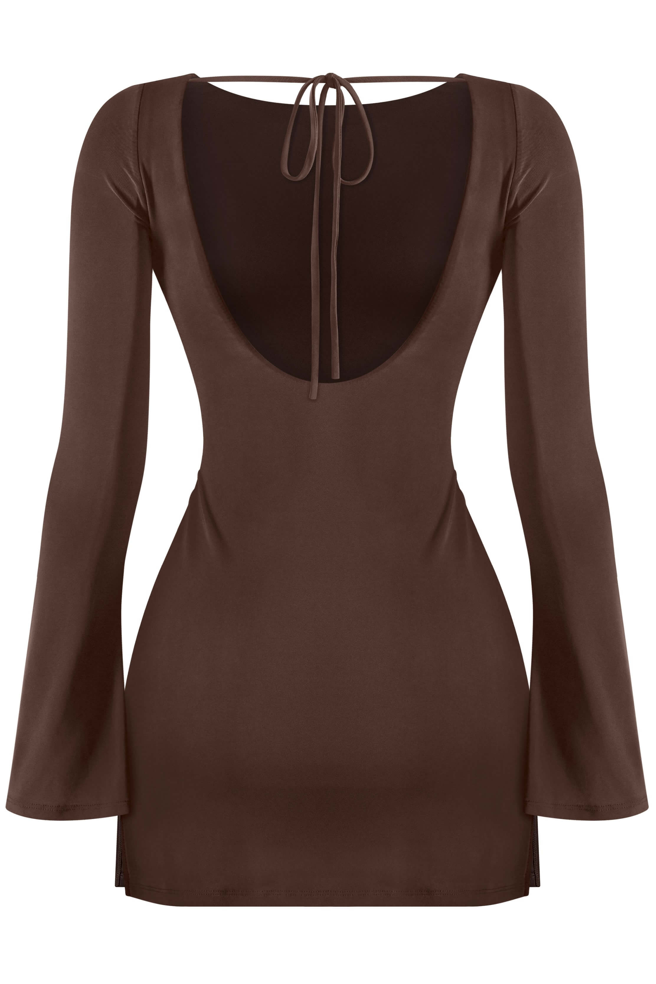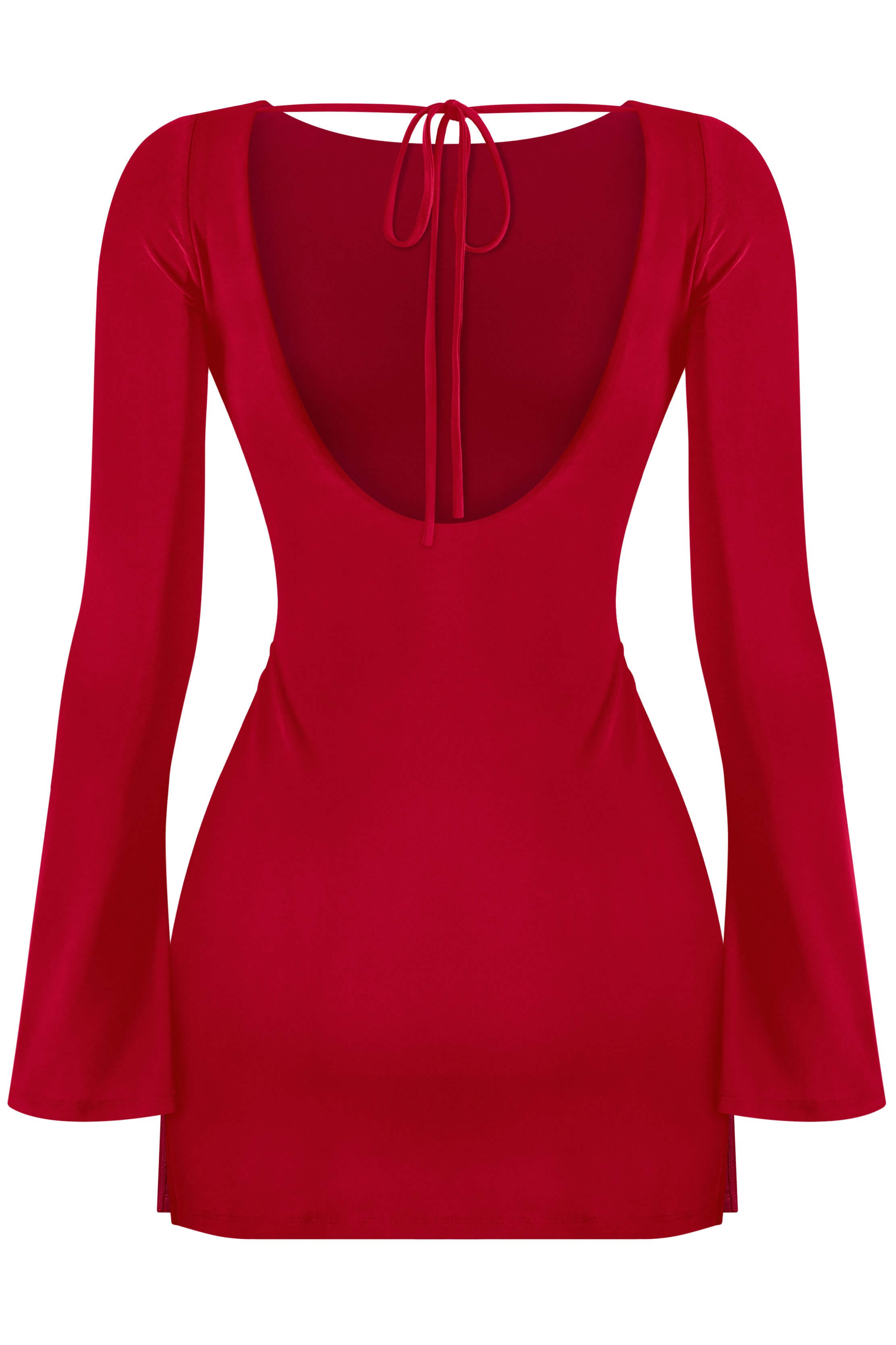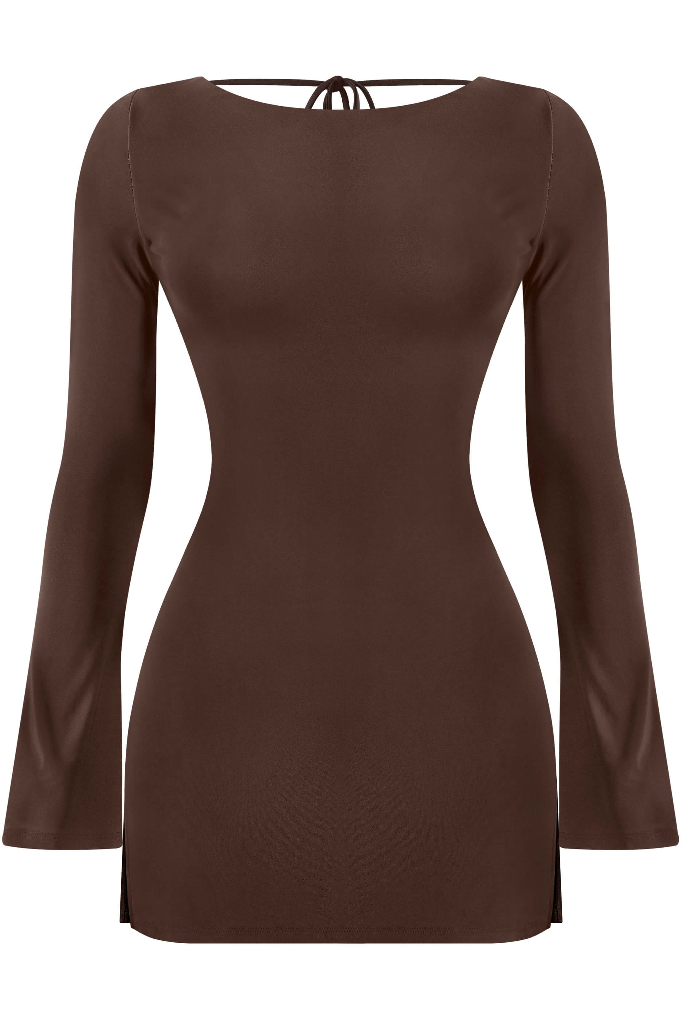 The Crystal Mini is an effortlessly chic piece that combines elegance with modern edge. Featuring a flattering boat neckline and dramatic bell sleeves, this mini dress makes a statement while the open back with adjustable drawstring ties adds an alluring touch of sophistication. Double-layered construction ensures comfort and coverage, while the stretchy fabric moves with you throughout your day. Side slits enhance mobility and create a flowy silhouette that's perfect for any occasion—from casual outings to evening events. Whether you're dressing up or down, this versatile mini delivers style that turns heads.