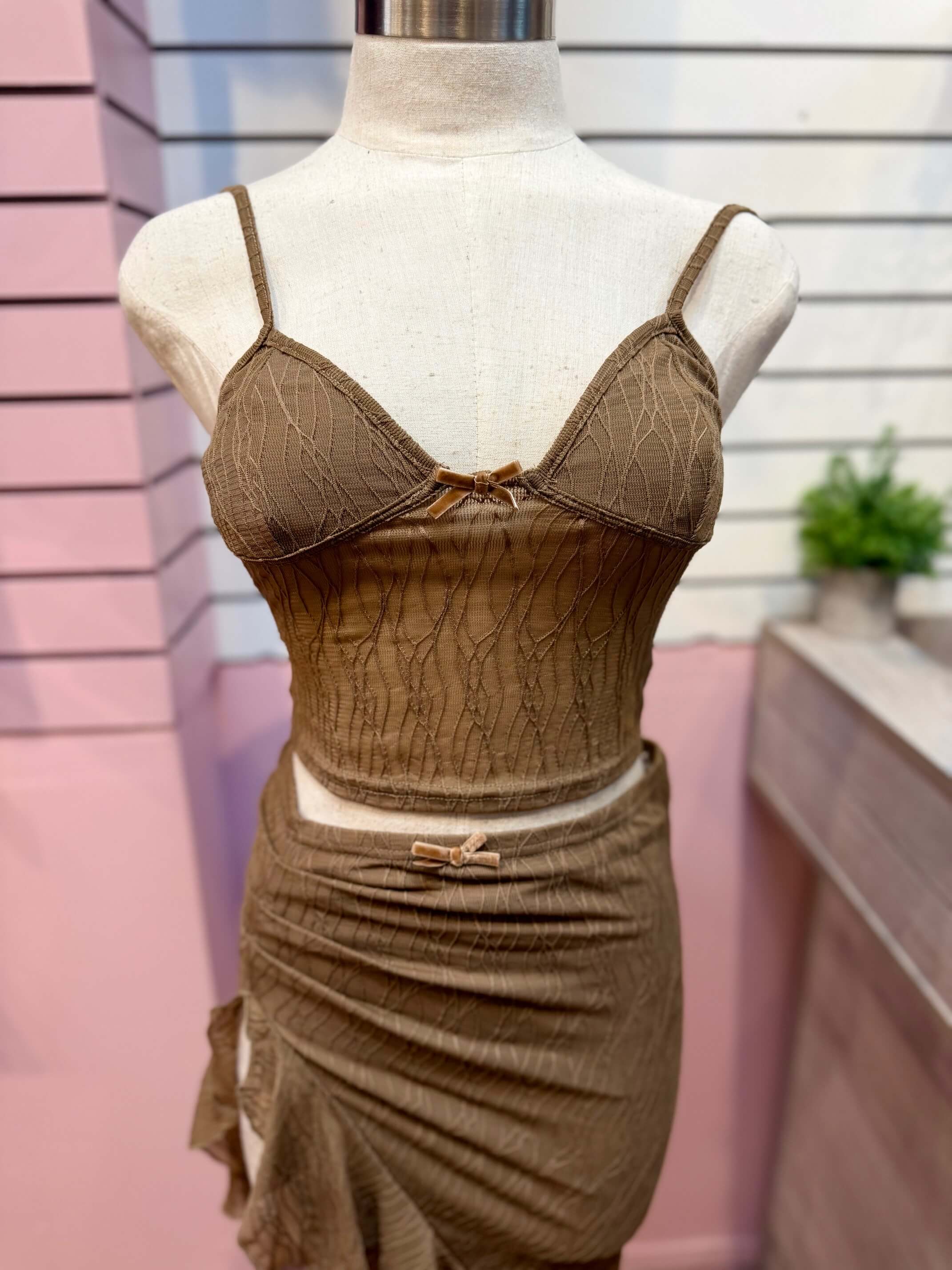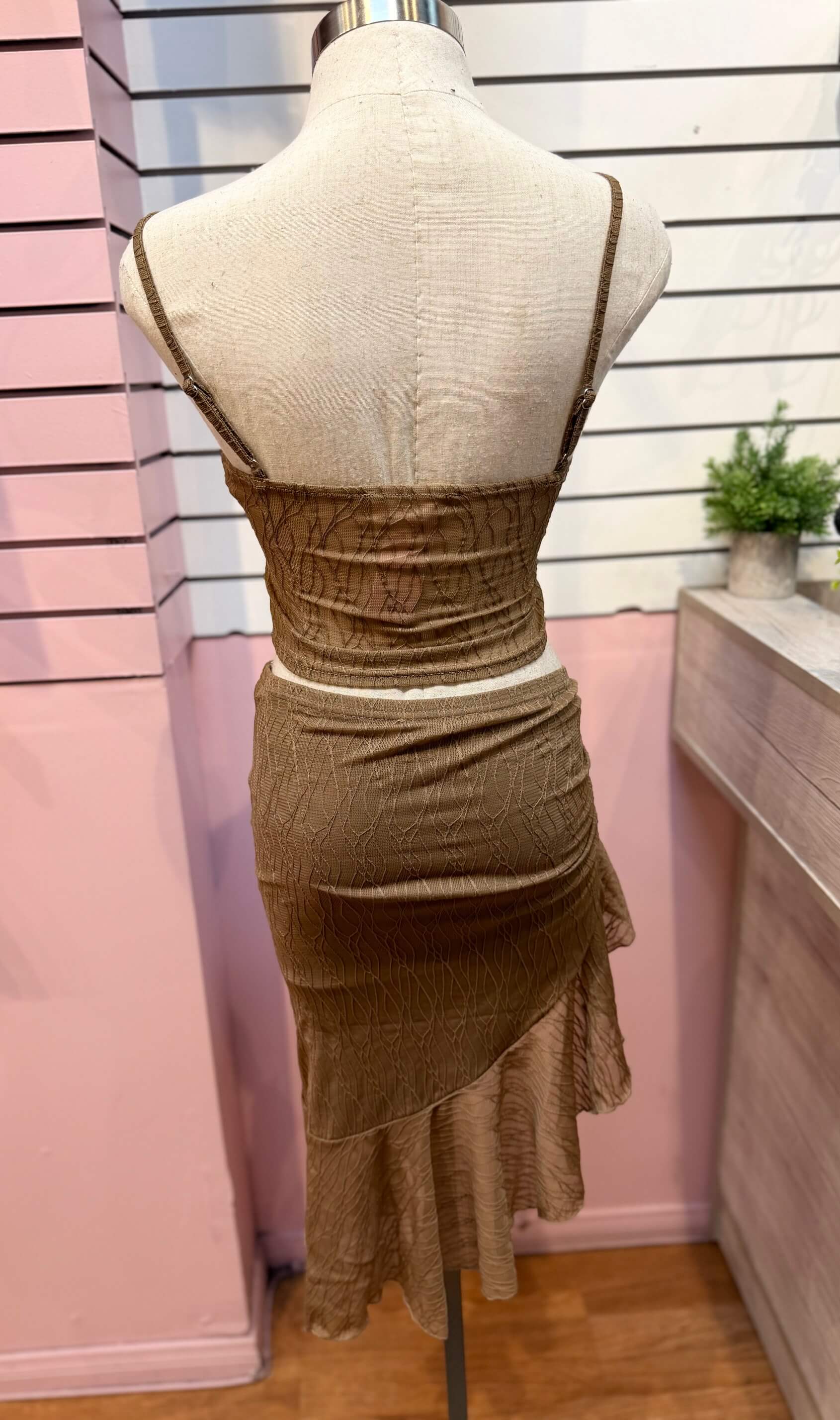 Escape to paradise in the Vacay Babe Set, your ultimate getaway essential. This chic two-piece features a flattering ruffle skirt with a sultry side split, perfect for beach days, resort dinners, or tropical adventures. The coordinated set effortlessly transitions from day to night, giving you that carefree vacation vibe wherever you go. Lightweight, breathable, and designed to turn heads—pack this set and leave the rest behind.